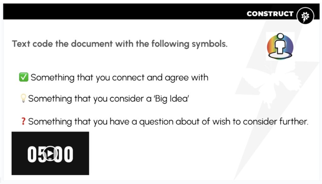 We captured these ideas and then moved on to reading educational research from the Education Endowment Foundation (EEF). The resources shared referenced evidence-based research that highlighted effective strategies and practices for promoting culture development—a particularly timely topic as we were in the throes of the autumn term. We text-coded this artefact focusing on connections, big ideas and questions that staff may have.